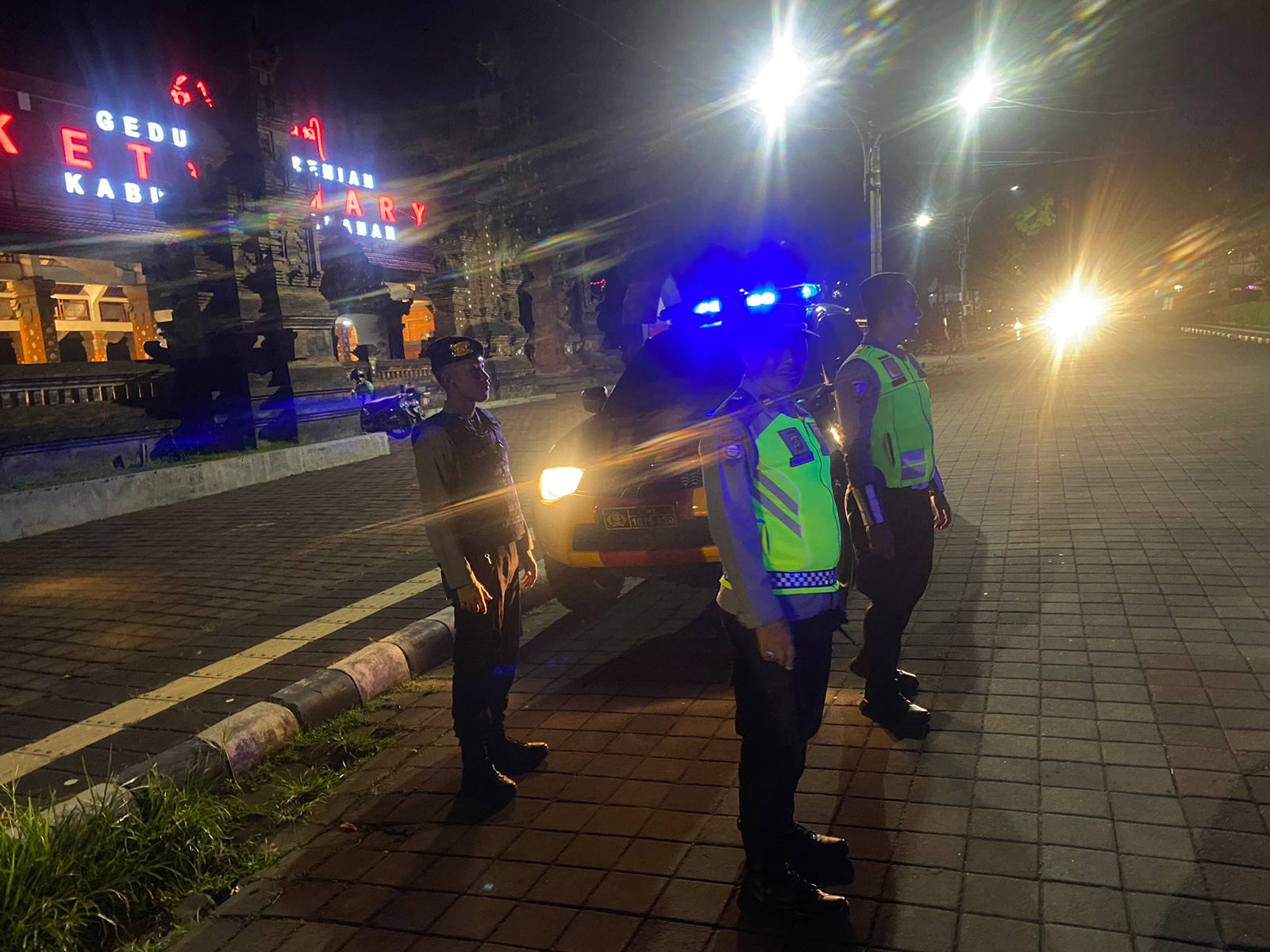 TABANAN – Personil Polres Tabanan bersama Personil Kodim 1619 dan Satpol PP Tabanan laksanakan patroli Blue Light Patrol sebagai langkah preventif guna menekan aksi kriminalitas, gangguan kamtibmas malam hari di wilkum Polres Tabanan, jelang pemilu 2024 pada Senin (29/1/2024)