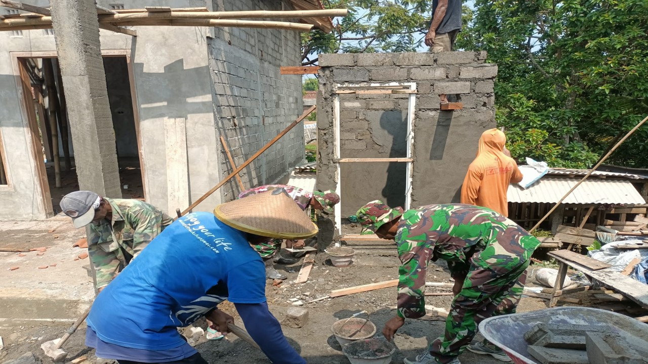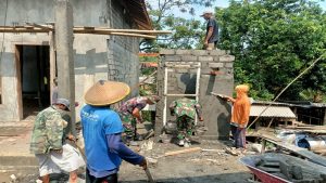 Mbah Mat Rokhim, seorang warga yang telah lama tinggal di Dusun Caren, terlihat rumahnya sedang disulap yang akan menjadi lebih layak huni dan dilengkapi dengan jamban yang lebih higienis berkat program TMMD ke-119.