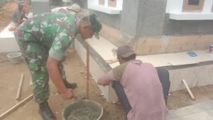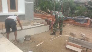 Penawar Aji, Tulang Bawang / Lampung – Babinsa Koramil 426-05/PA, Kodim 0426 Tulang Bawang Sertu Muji guna meningkatkan kerja sama dan solidaritas membantu warga melanjutkan pemasangan keramik, di Kampung Gedung Rejo, Kecamatan Penawar Aji, Kabupaten Tulang Bawang, Sabtu 23 Desember 2023.