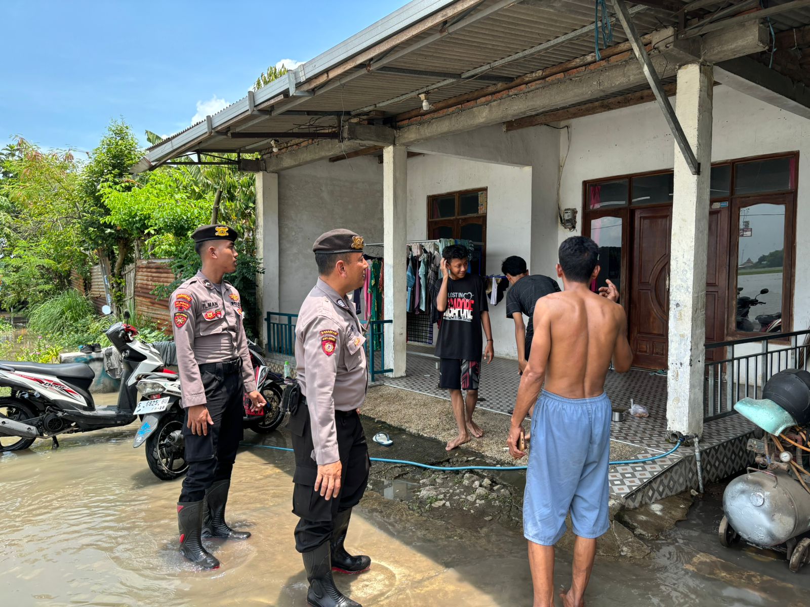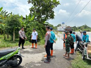Kapolres Jombang AKBP Eko Bagus Riyadi menugaskan Kasat Samapta Iptu Ahmad Aly Efendi untuk melaksanakan patroli ke pemukiman bersinergi dengan Forpimca dan BPBD di lokasi banjir, Yakni di Kecamatan Mojoagung dan Sumobito.