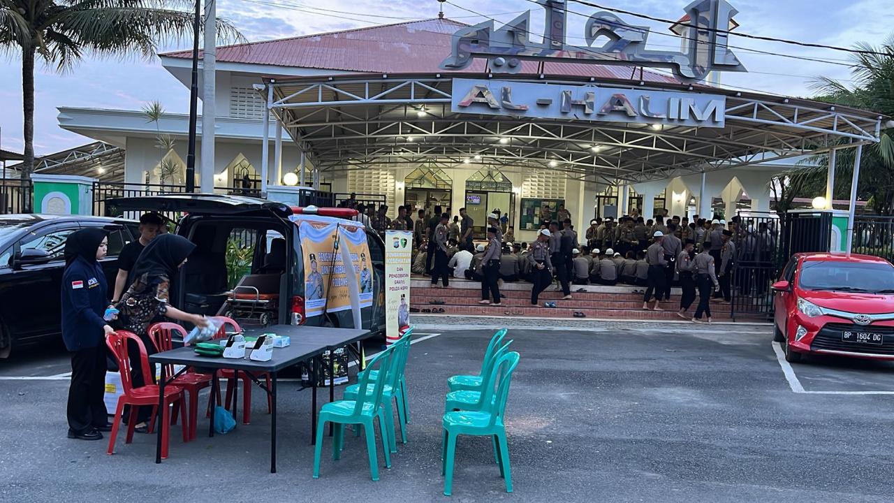 Kabiddokkes Polda Kepri Kombes. Pol. dr. Muhammad Haris, MA.R.S. mengatakan untuk pelayanan kesehatan pertama dilakukan didepan Masjid Al-Halim, Polda Kepri. Pelayanan kesehatan ini diberikan untuk anggota Polri dan masyarakat sekitar yang menghadiri salat tarawih.