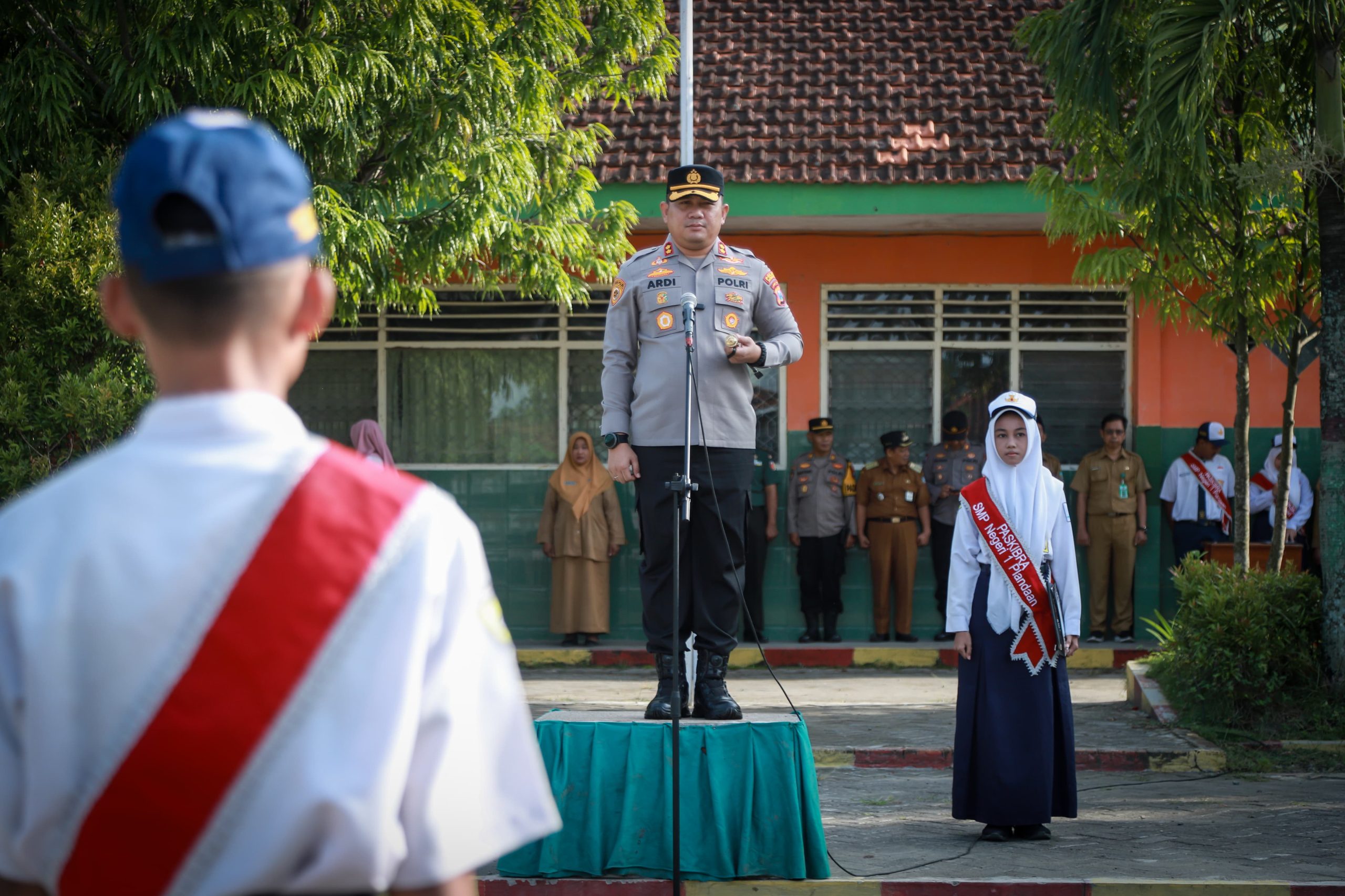 Jombang, Polres Jombang menggelar kegiatan *Police Goes to School* di SMP Negeri Plandaan, Kecamatan Plandaan, Kabupaten Jombang. Senin, (21/4/2025). Kegiatan ini merupakan bagian dari program rutin kepolisian dalam rangka pembinaan dan penyuluhan kepada pelajar, guna menanamkan nilai-nilai kedisiplinan, wawasan kebangsaan, serta kesadaran hukum sejak dini.Kapolres Jombang, AKBP Ardi Kurniawan, S.H., S.I.K., CPHR, selaku inspektur upacara, menyampaikan bahwa kegiatan ini merupakan salah satu bentuk pendekatan Polri untuk menjangkau pelajar secara langsung. Program ini bertujuan memberikan edukasi serta mempererat hubungan antara polisi dengan masyarakat, khususnya di lingkungan sekolah.