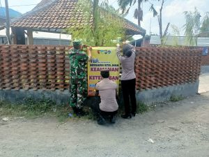 Usai melaksanakan binluh, petugas turut melakukan pemasangan spanduk berisi ajakan untuk menjaga keamanan dan ketertiban bersama di sejumlah lokasi strategis.