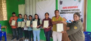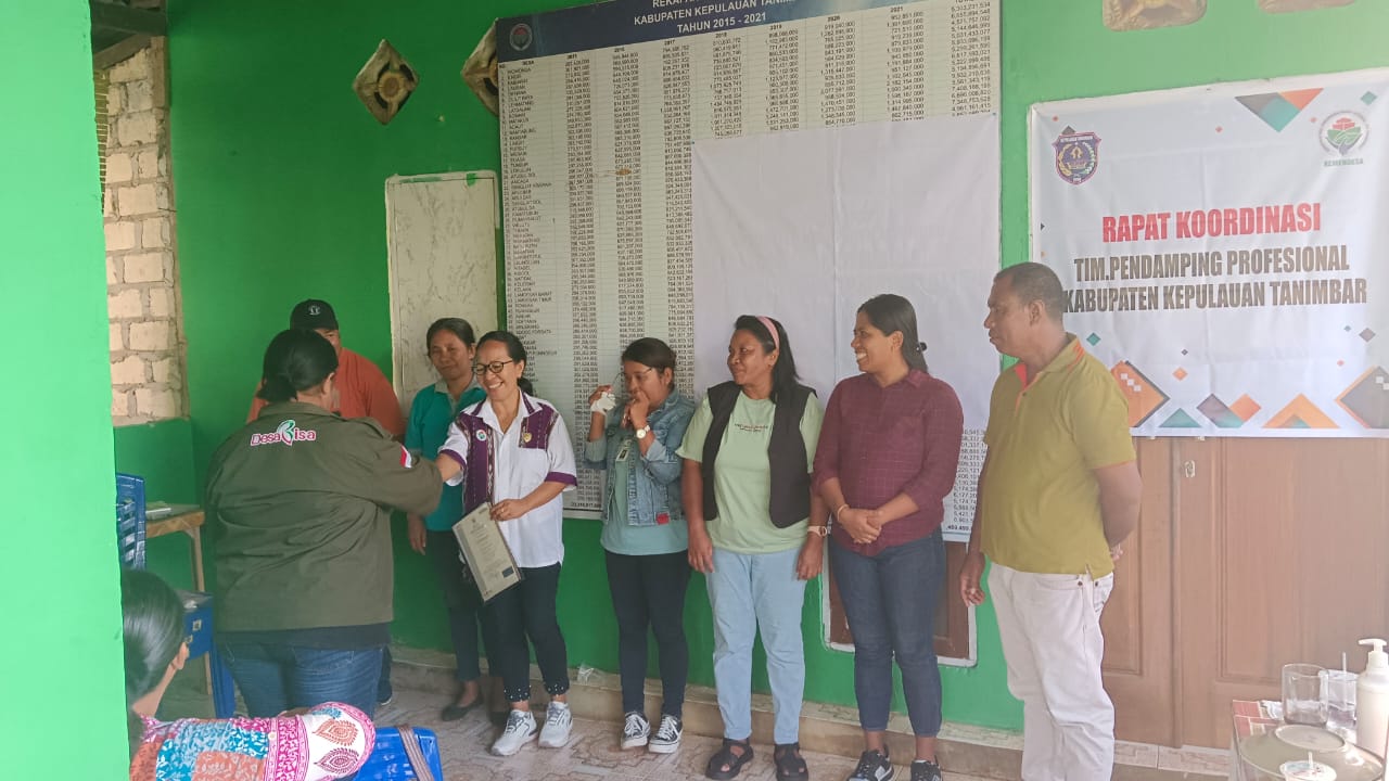 Kepulauan Tanimbar, Maluku – Delapan Pendamping Lokal Desa Kabupaten Kepulauan Tanimbar Propinsi Maluku terima sertifikat Kompetensi Tenaga Pendamping Profesional dengan kualifikasi ” Okupasi Nasional Pendamping Lokal Desa”. Sertifikat tersebut dikeluarkan oleh Badan Nasional Sertifikasi Profesi Indonesia Profesional.Penyerahan dilakukan langsung oleh Koordinator Tenaga Pendamping Profesional Pogram Pembangunan dan Pemberdayaan Masyarakat Desa ( TPP P3MD ) Pada Rapat Koordinasi TPP P3MD Kabupaten Kepulauan Tanimbar di Kantor Tenaga Ahli Pemberdayaan Masyarakat ( TAPM ) Jln.Drs.S.J Oratmangun Olilit Raya, Kecamatan Tanimbar Selatan Jumat 02 Februari 2024.