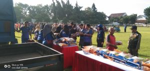 Usai apel secara simbolis pukul 06.48 wib Bupati Jombang, Abah Warsubi langsung turun ke lapangan mengawali pemberian paket kepada abang becak yang diikuti para petinggi di Setdakab Jombang juga diikuti juga oleh Forkopimda.