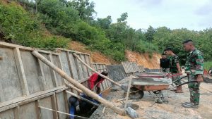 Blitar – Tidak terasa Satuan Tugas (Satgas) TNI Manunggal Membangun Desa (TMMD) Ke-119 Kodim 0808/Blitar mulai memasuki minggu ke 4, berarti target waktu 1 bulan akan segera berakhir. Progres pembangunan talud yang menjadi bagian penting dalam program ini telah mencapai target sepanjang 50 meter, tinggi 1 meter yang merupakan bagian sisi rabat jalan menghubungkan Dusun Gebang dan Dusun Caren di Desa Wonotirto, Kecamatan Wonotirto, Kabupaten Blitar, Jumat (15/3/2024).