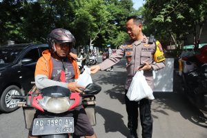 Jum’at  Penuh Berkah, Wakapolres Kediri Kota Borong Dagangan UMKM, Dibagikan ke Masyarakat