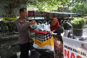 Wakapolres Kediri Kota Kompol Dodik Tri Hendro Siswoyo, S.H., S.I.K., M.I.K. menerangkan pembagian nasi bungkus dan makanan ringan kepada masyarakat ini selain program Jum’at Berkah ini memang menerapkan konsep dari masyarakat untuk masyarakat. Kita beli produk UMKM sekitar Mapolres Kediri Kota, hasilnya dibagikan kepada masyarakat yang membutuhkan,”kata Kompol Dodik