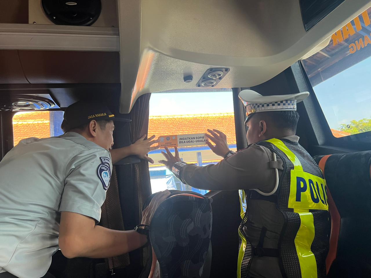 Selain memberikan Himbauan Langsung, kami juga menempelkan stiker yang bertuliskan “INGATKAN SOPIR BILA UGAL UGALAN” stiker tersebut sengaja kami pasang di dalam kabin Bus, supaya dapat dilihat oleh penumpang, sehingga penumpang dapat mengingatkan sopir ketika sopir membawa mobil dan membahayakan penumpang”Pungkas Kanit Gakkum IPTU BUDI WINARIYANTO. S.H