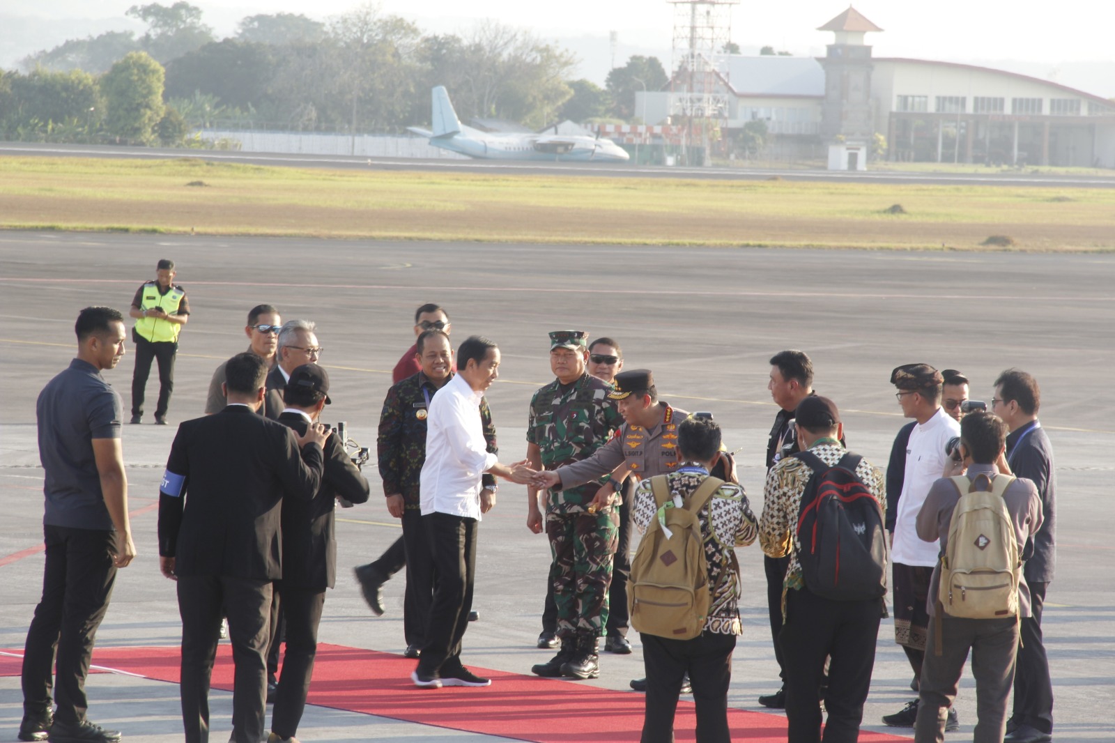 Nampak juga hadir Pj. Gubernur Bali S.M Mahendra Jaya , Pangdam IX/Udayana Mayjen TNI Harfendi serta Pejabat Utama Mabes Polri , Mabes TNI, Polda Bali dan Forkopimda Provinsi Bali saat Presiden RI akan datang di pulau Dewata.