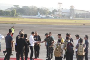 BALI – Kapolda Bali Irjen Pol. Ida Bagus Kd Putra Narendra, S.I.K., M.Si mendampingi Kapolri Jenderal Polisi Listyo Sigit Prabowo bersama Panglima TNI Laksamana Yudo Margono menyambut kedatangan Presiden Republik Indonesia Ir. Joko Widodo bersama di Base Ops Bandara Internasional I Gusti Ngurah Rai, Selasa (10-10-2023)
