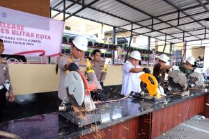 “Pemusnahan knalpot brong itu dengan cara dipotong hingga hancur berkeping keping menggunakan alat gerinda,” kata AKP Taufik Nabila.