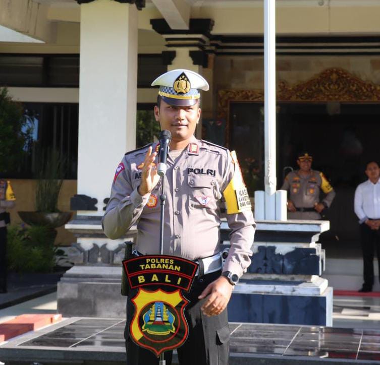 TABANAN – Kasat Lantas Polres Tabanan selaku Kasatgas Kamseltibcar lantas AKP ADRIAN RIZKI RAMADHAN S.T.K., S.I.K. Pagi ini Berikan Arahan dalam giat apel Pagi Personil OMB antara lain ,Para Kasatgas, Personil yang tersprint Operasi Mantap Brata Agung 2023-2024 tahap Kampanye. Rabu Tanggal 17 Januari 2024 ,pukul 08.00 s/d 08.30 wita.