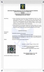 LAMONGAN , Kementerian Hukum dan Hak Asasi Manusia (Kemenkumham) RI telah menerbitkan Surat Keputusan (SK) yang mengesahkan kepengurusan Persaudaraan Setia Hati Terate (PSHT) di bawah kepemimpinannya Dr Ir Muhammad Taufiq S.H ,M,Sc