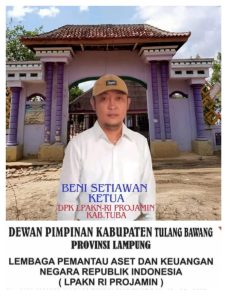 Tulang Bawang, – Dewan Pimpinan Kabupaten (DPK) Lembaga Pemantau Aset Dan Keuangan Negara Republik Indonesia (LPAKN-RI) Profesional Jaringan Mitra Negara (PROJAMIN) kabupaten Tulang Bawang, “Beni Setiawan, beserta jajarannya sangat mengapresiasikan kinerja Tekab 308 polres tulang bawang, dalam menindaklanjuti laporan kepolisian atas pengeroyokan dan penusukan salah satu oknum anggota wartawan holidi di desa penawar jaya kabupaten tulang bawang, provinsi lampung. Minggu,. (25/02/2024)