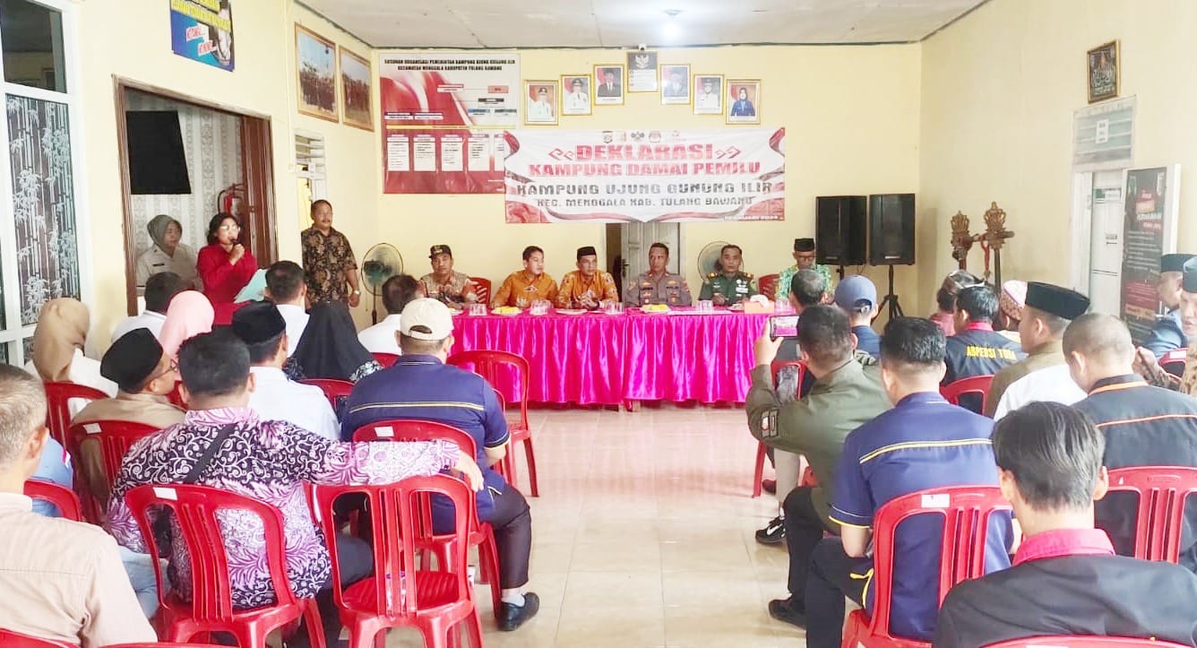 “Adapun 8 Kampung Damai Pemilu yang baru dideklarasikan yakni Kampung Gedung Karya Jitu, Kecamatan Rawa Jitu Selatan, Kampung Pendowo Asri, Kecamatan Dente Teladas, Kampung Batang Hari, Kecamatan Rawa Pitu, Kampung Panca Tunggal Jaya, Kecamatan Penawar Aji, Kampung Purwa Jaya, Kecamatan Banjar Margo, Kampung Ujung Gunung Ilir, Kecamatan Menggala, Kampung Kahuripan Dalem, Kecamatan Menggala Timur, dan Kampung Sidoharjo, Kecamatan Penawartama,” terang perwira dengan melati dua dipundaknya.