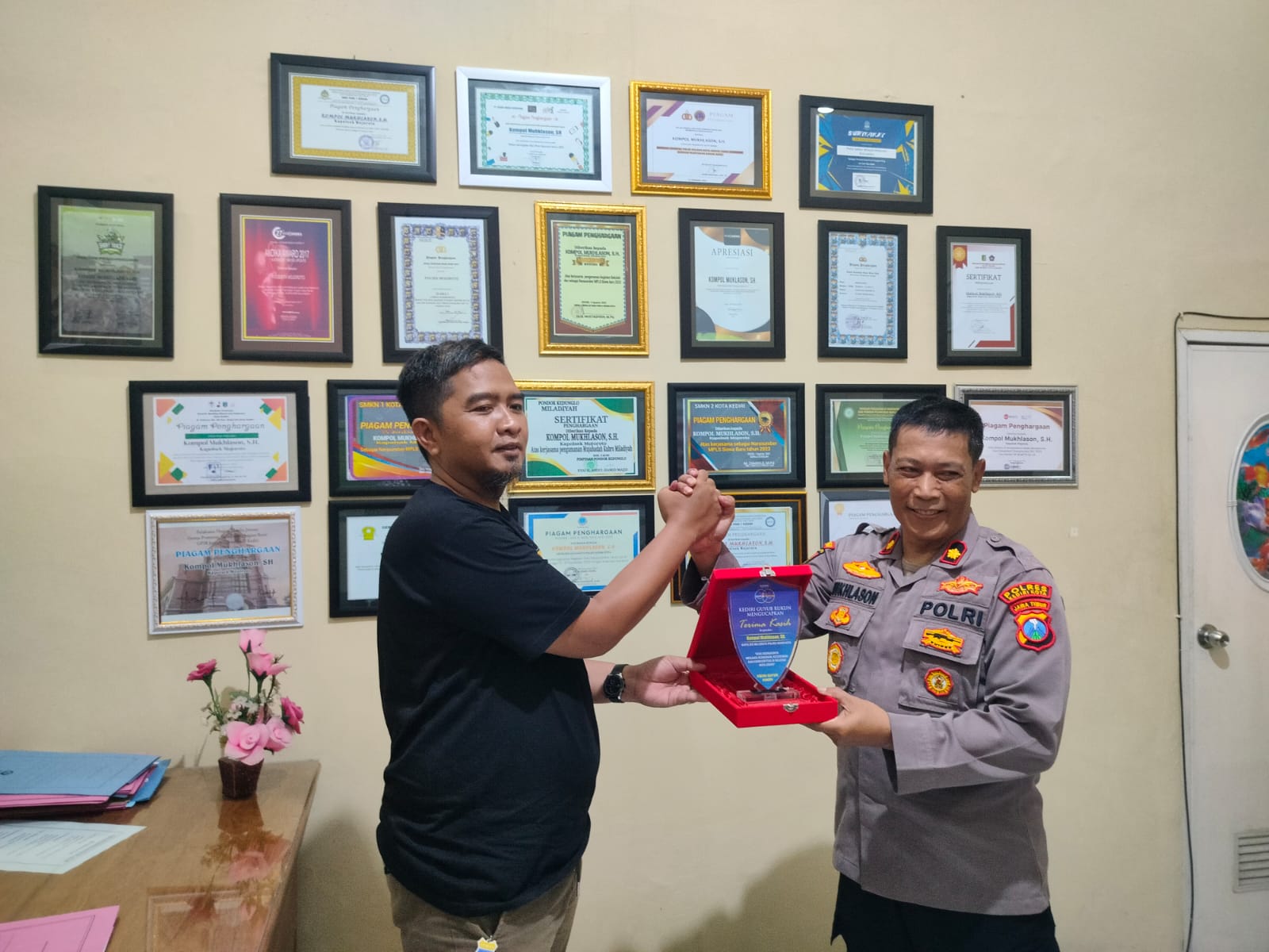 Kediri Kota – Kepala Kepolisian Sektor ( Kapolsek ) Mojoroto Kompol Mukhlason Kembali menerima penghargaan, namun kali ini datang dari wartawan, yang tergabung dalam group “ Kediri Guyub Rukun “, Senin ( 5/2/2024 ). Piagam penghargaan diserahkan perwakilan KGR dan diterima langsung Kompol Mukhlason di kantornya.