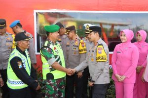 TULUNGAGUNG – Kapolres Tulungagung AKBP Teuku Arsya Khadafi, S.H., S.I.K., M.H., didampingi Ketua Bhayangkari Cabang Tulungagung Ny. Dini Arsya Khadafi mengunjungi Pos Pengamanan (Pos Pam) dan Pos Pelayanan (Pos Yan) Ops Lilin Semeru 2023 di Kabupaten Tulungagung.