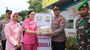 Ketua Bhayangkari Cabang Kediri Kota beserta pengurus juga memberikan bingkisan kepada personel pengamanan sebagai bentuk dukungan dan apresiasi atas tugas yang diemban oleh para petugas Pos Pam