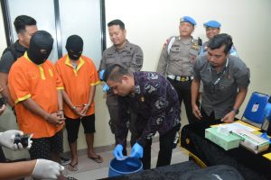 “Barang bukti narkotika jenis Sabu dimusnahkan dengan cara dilarutkan kedalam Tong air yang berisikan air panas lalu dibuang ke dalam Septic Tank yang disaksikan langsung oleh kedua tersangka dan tamu undangan dari Perwakilan Kejaksaan Negeri Batam, Perwakilan BPOM Kota Batam, Pengadilan Negeri Batam, LSM Granat, dan Advokat. Kedua tersangka dikenakan Pasal 112 Ayat (2) dan atau Pasal 114 Ayat (2) Undang-Undang Nomor 35 Tahun 2009 tentang Narkotika, dengan ancaman hukuman mati atau pidana penjara seumur hidup atau paling lama 20 tahun dan paling singkat 5 tahun.” Tutup Panit 2 Subdit 3 Ditresnarkoba Polda Kepri Ipda Muhammad Asikin, S.H. ( Redaksi. / Yadi. )