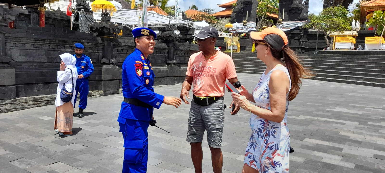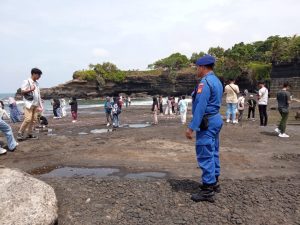 Sambang Patroli dengan  Jalan Kaki dan  Dialogis serta  memberikan himbauan kepada Para Wisatawan / Pengunjung, Pelaku Usaha Wisata, Photographer, Pedagang dan warga masyarakat yang beraktivitas di  Pesisir Pantai  dan Kawasan DTW Tanah Lot Kediri Tabanan dan DTW lainnya ,serta dihimbau untuk berhati- hati mengingat permukaan batu karang dalam keadaan licin