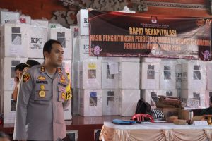 TABANAN – Kapolres Tabanan AKBP Leo Dedy Defretes, S.H.,S.I.K.,M.H, lakukan pengecekan dan monitoring personil yang melaksanakan tugas pengamanan pada Rapat Pleno Rekapitulasi Perhitungan Surat Suara di PPK Kecamatan Kediri, Jumat ( 23/02/2024 )