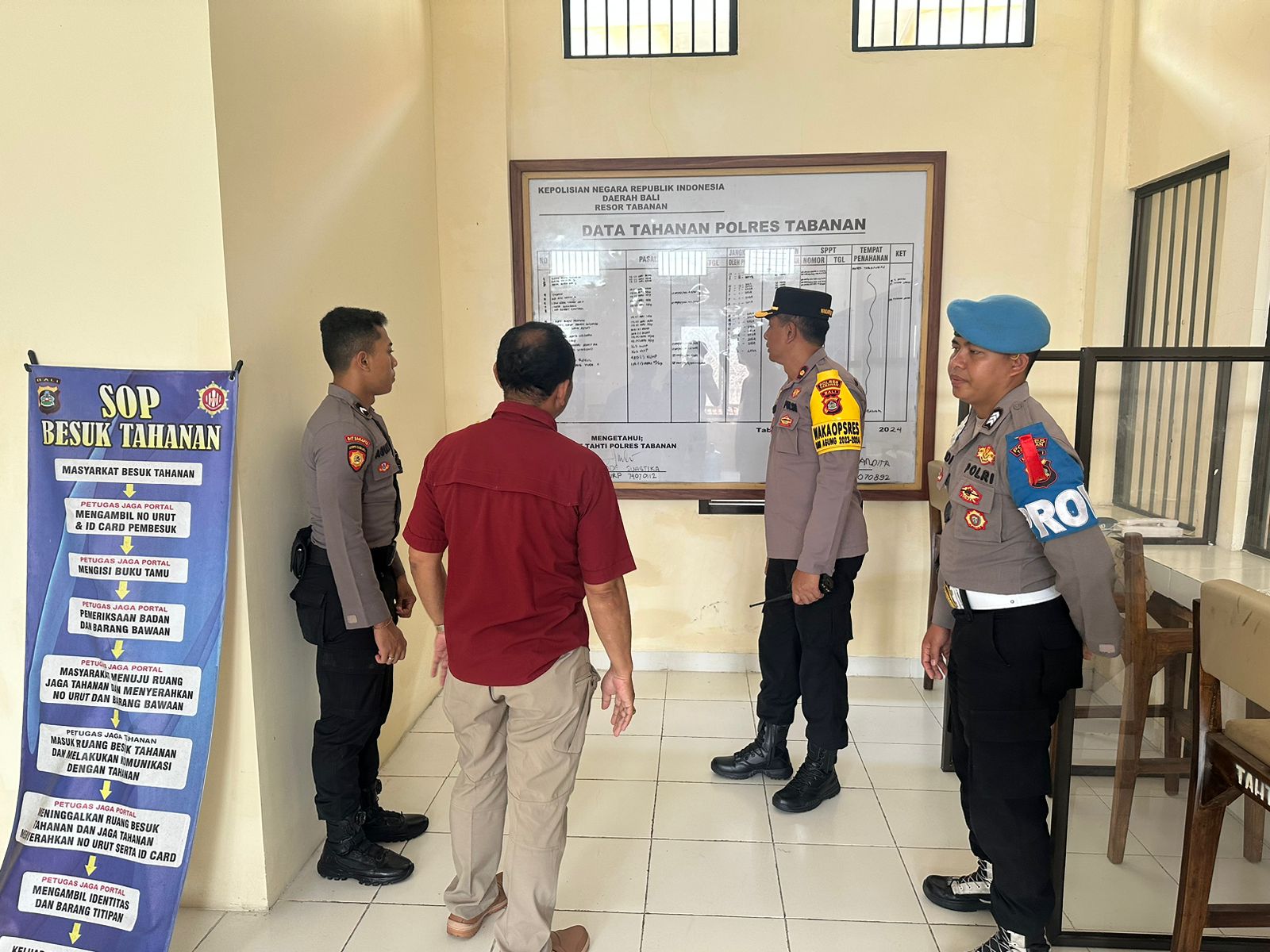 TABANAN – Untuk memastikan ruang tahanan di Polres dalam keadaan aman, Waka Polres Tabanan Kompol I Gede Made Surya Atmaja P., S.Sos., M.H. melakukan pengecekan ruang tahanan Polres Tabanan, Kamis (22/2/2024).