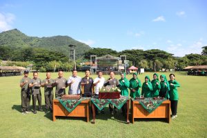 Usai menggelar potong nasi tumpang, Kapolres dan Dan Brigif 16 /Wira Yudha berpose bersama dengan Forkopimda Kota Kediri dan Danyon 521 dan Danyon 516