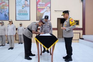 BLITAR KOTA. –   Kapolres Blitar Kota, AKBP Danang Setiyo P.S S.H S.I.K memimpin upacara serah terima jabatan (Sertijab) Kapolsek Srengat. Upacara Sertijab berlangsung di Gedung Patriatama Mapolres Blitar Kota, Jum at (2/1/2024).