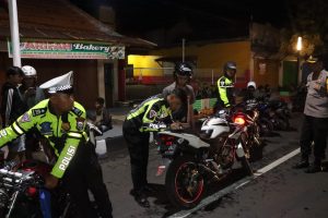 Dari beberapa tempat tersebut petugas patroli berhasil mengamankan 22 unit motor yang diduga akan melakukan balap liar dan melanggar aturan lalu lintas diantaranya menggunakan knalpot brong dan tidak sesuai spektek serta selanjutnya digiring ke Polres Nganjuk untuk dilakukan penindakan. ( Faozan )