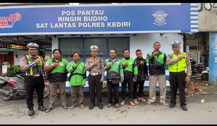 Kasat Lantas Polres Kediri Akp Suryono S.Sos, melalui Kanit Kamsel Ipda Agus Widada S.H saat berada di Lokasi pangkalan ojek Online mengatakan, pesan kantibmas dan Kamseltibcar Lantas Akan terus di sampaikan kepada masyarakat.
