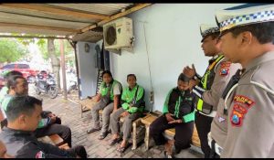 “Saat ini kami menyambangi pangkalan ojek online untuk menghimbau kepada teman-teman dari ojek online untuk tetap menjaga Kamseltibcar Lantas terlebih mendekati hari raya Idul Fitri tentunya aktivitas di jalan akan meningkat” Pungkas Kanit Kamsel Ipda Agus Widada S.H