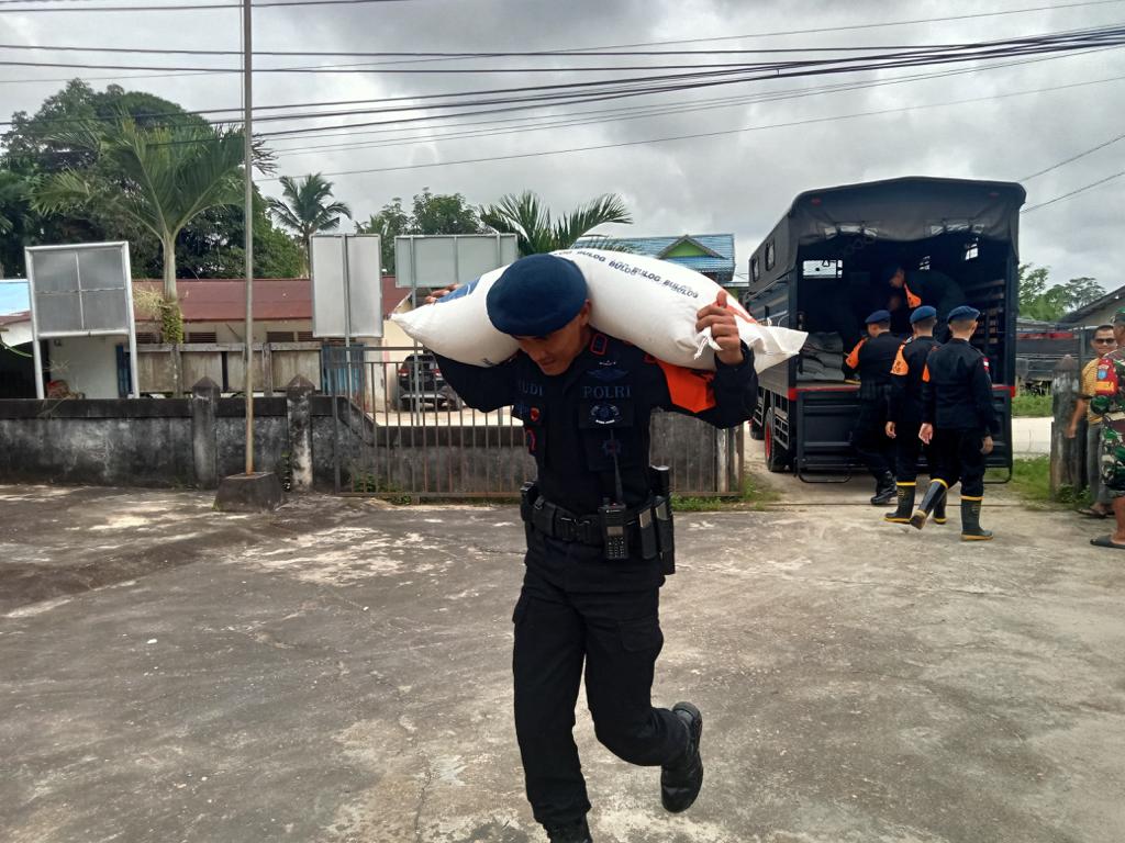 Sintang Kalbar – Satbrimob Polda Kalbar bersama TNI dan BPBD Kabupaten Sintang melaksanakan pendistribusian bantuan untuk masyarakat yang terdampak banjir di Kabupaten Sintang. Jum’at (15/03/24).