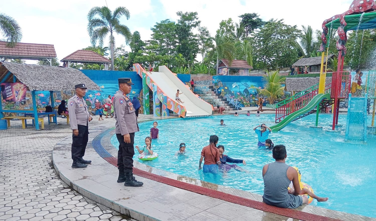 Lokasi kedua yang kami datangi yakni waterboom taman bahagia, Kampung Cempaka Dalam, Kecamatan Menggala Timur. Di lokasi ini, kami mengingatkan agar para pengunjung tetap waspada sehingga tidak menjadi korban pencurian, dan kepada para orang tua agar selalu mengawasi anak-anaknya sehingga tidak terjadi peristiwa anak tenggelam akibat kelalaian dalam pengawasan.