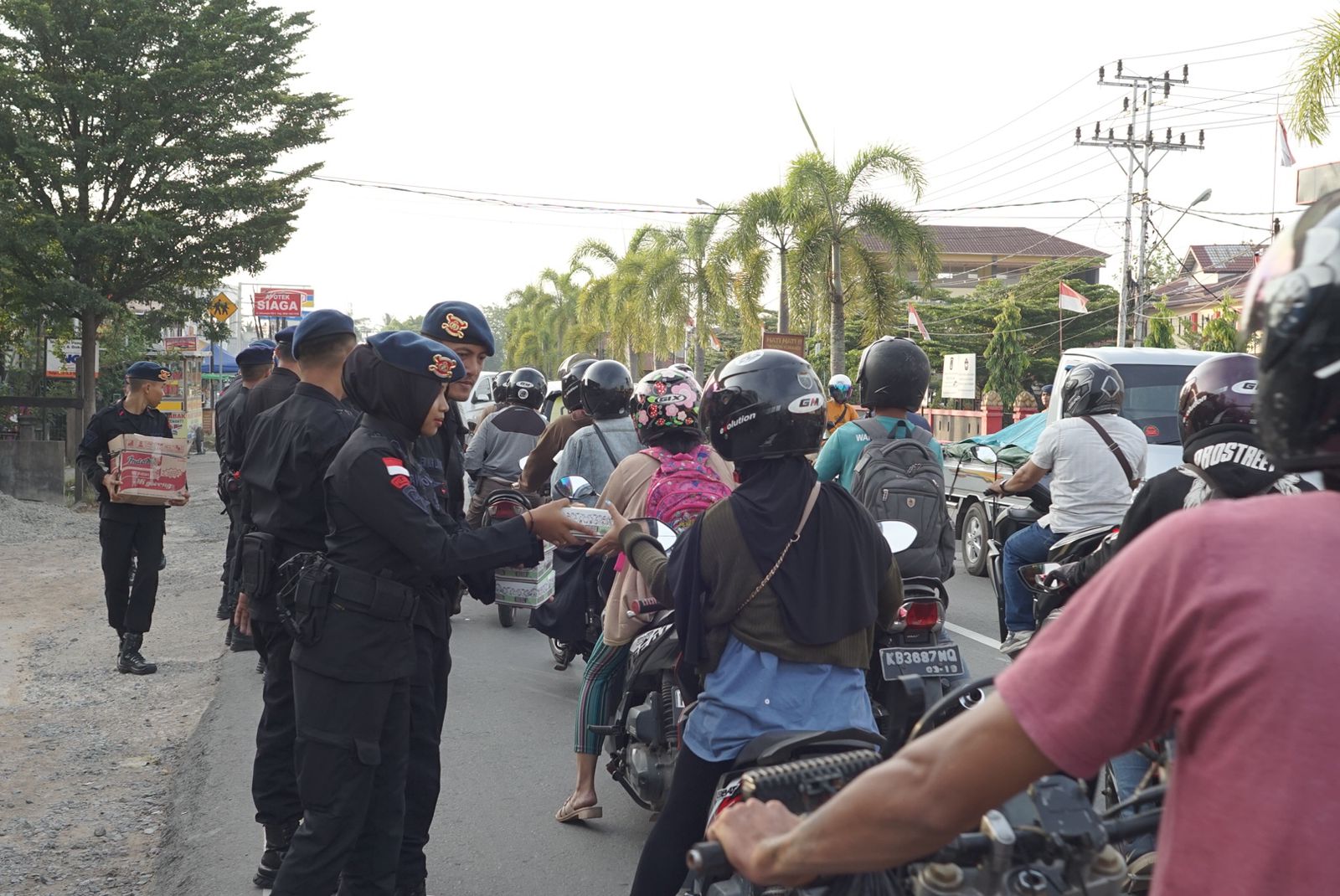 Kegiatan bagi-bagi takjil ini juga merupakan upaya kami untuk membantu masyarakat yang pulang bekerja atau bahkan yang masih bekerja mencari hidangan berbuka serta kegiatan ini merupakan bentuk nyata hadirnya Polri ditengah-tengah masyarakat. Kami juga mengucapkan terimakasih kepada masyarakat yang telah bersedia menerima takjil pemberian kami ini “ ucap Ipda Bujang Waluyo. ( Yipno )