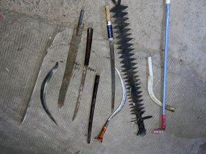 Miris nya petugas ikut mengamankan berbagai senjata tajam dengan ukuran yang tidak lazim diantaranya, 1 buah stick golf, 1 buah parang, 4 buah celurit, 2 buah golok sisir, 2 samurai hingga plat panjang