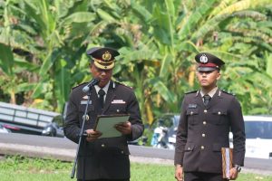 Bertindak sebagai Perwira Upacara AKP I Gusti Ketut Suarcana sedangkan sebagai Komandan Upacara Ipda I Gede Putu Krisnawan dengan peserta upacara 1 barisan Perwira Polres dan Polsek, 1 peleton pasukan bersenjata, 1 regu penembak salvo, 2 pers pengawal Jenazah, 4 pers perentang Bendera Merah Putih, 1 Peleton staf gabungan Polres dan Polsek serta 1 barisan Bhayangkari.