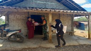 Blitar – Babinsa Koramil 0808/19 Wates Kodim 0808/Blitar Sertu Edy Waluyo bersama Bidan Desa, melaksanakan kegiatan pemantauan kesehatan anak penderita stunting yang ada di wilayah binaannya.